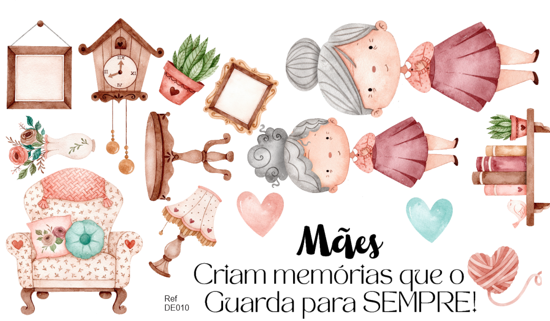 • O Kit Mães contém + de 10 imagens, de tamanhos aleatórios, respeitando a proporcionalidade das imagens principais + Frase: Mães criam memórias que o coração guarda para sempre.