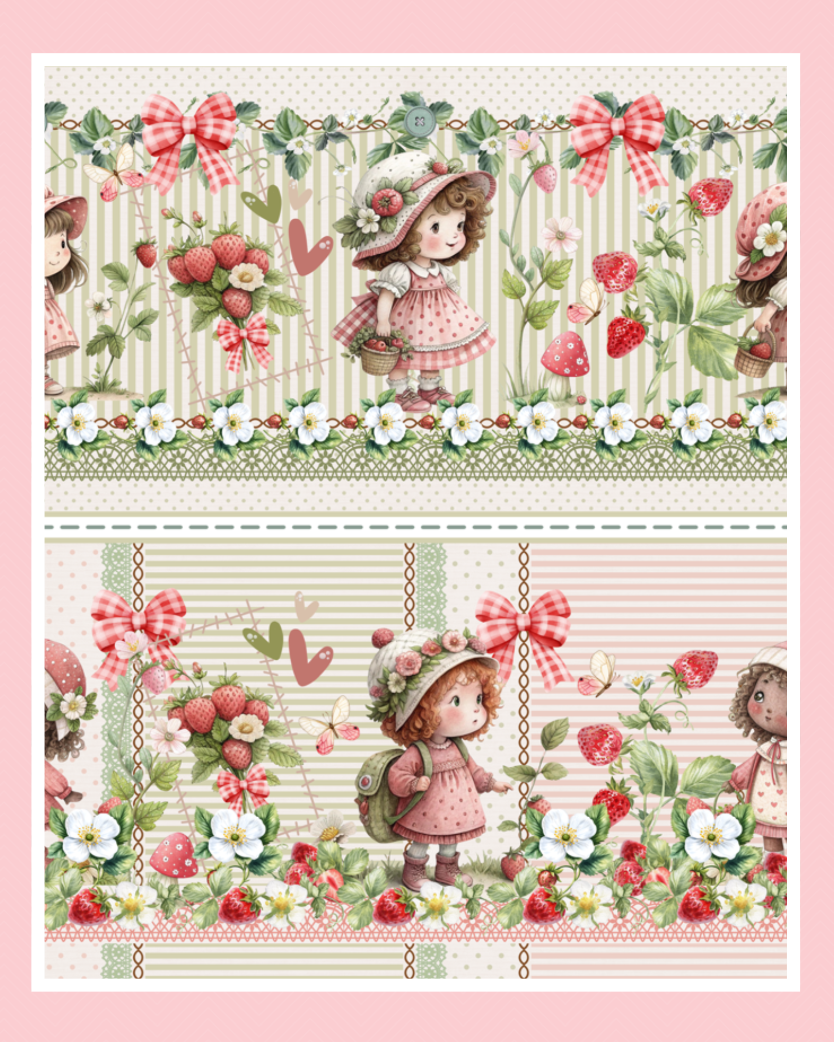 Cada estampa traz um universo doce, com morangos, laços, flores e personagens que despertam afeto e vontade de criar.