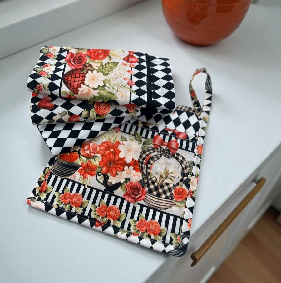 Um presente encantador para quem ama cuidar do lar com estilo e personalidade. Produtos com as estampas da Coleção Black & White esse lindo kit é versátil e prático, vai do forno ao fogão, atendendo grande parte das tarefas da sua cozinha.